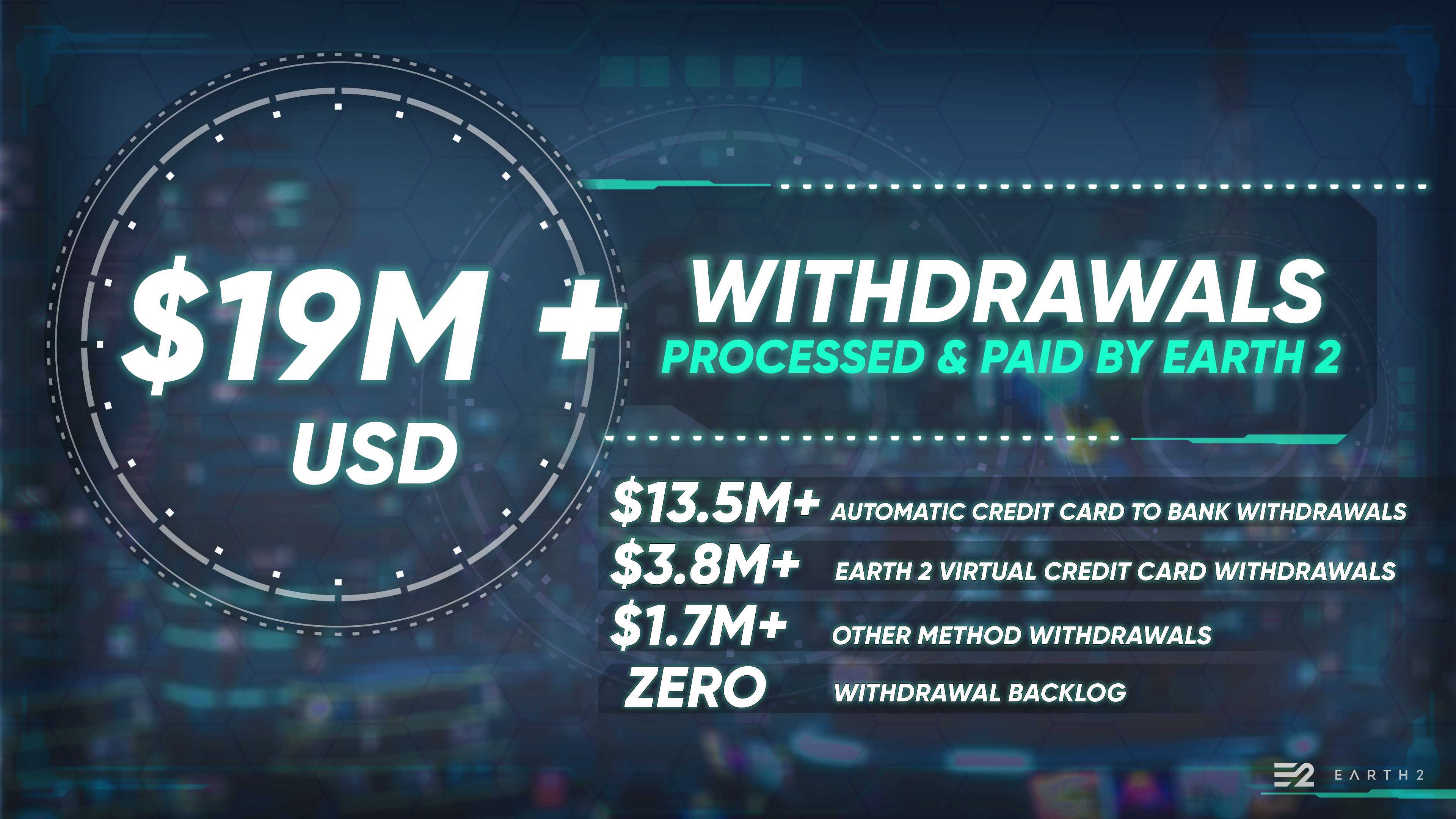 Earth 2, 1,900만 달러 이상의 인출 처리 완료