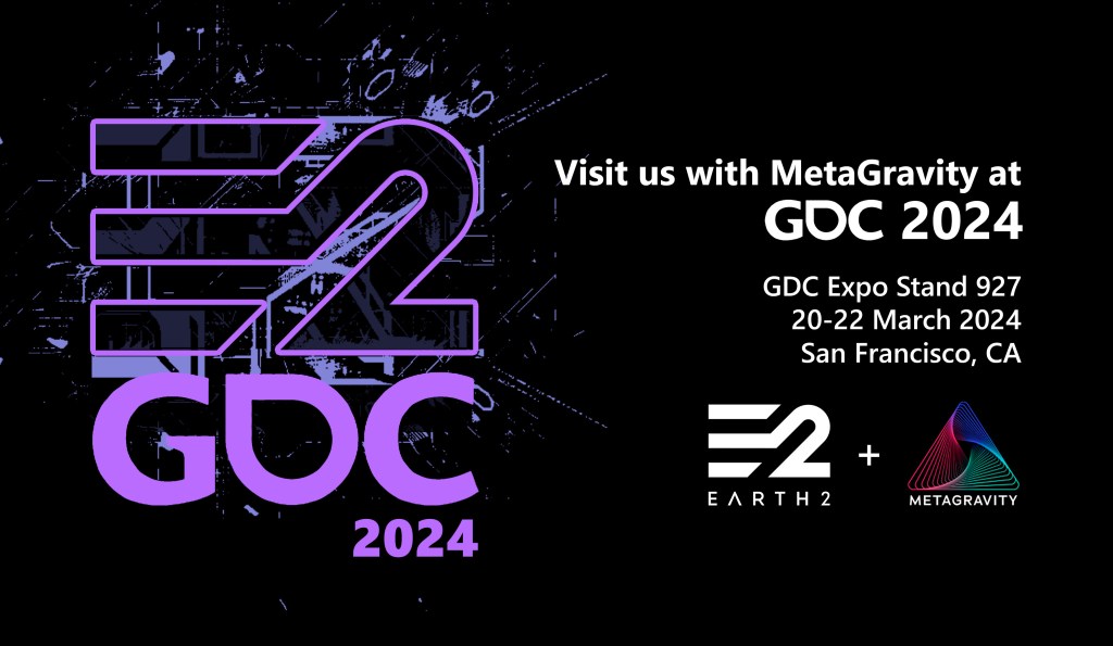 샌프란시스코에 있거나 GDC 행사에 참석하는 경우, Meta와 Unity 바로 사이에 있는 스탠드 S927의 Earth 2 부스와 MetaGravity를 꼭 방문하십시오. 놓칠 수 없을 것입니다!