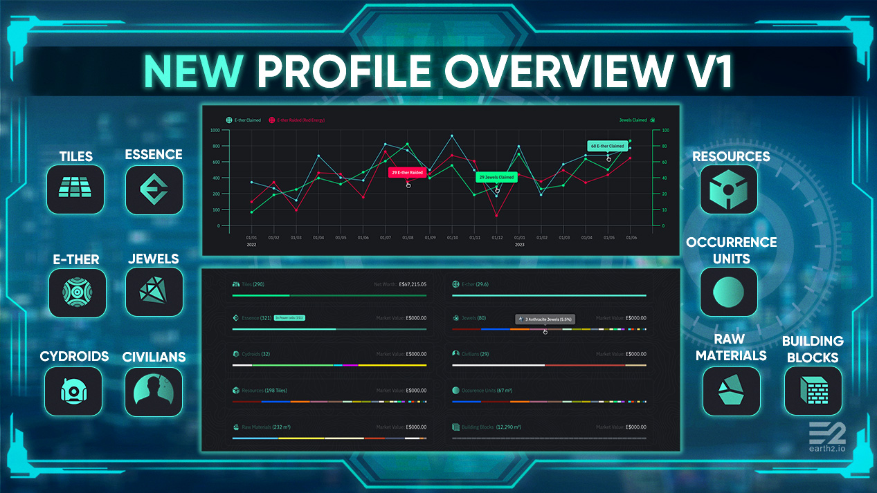 2023年7月28日 – 澳大利亚悉尼 – Earth 2 很高兴地宣布推出新的 Profile Overview V1 功能,这是我们不断致力于为玩家提供更好数字物品概览的一部分。这是对个人资料页面的一个有用的更新,使玩家能够快速获得对其累积的 Earth 2 数字物品等的有价值的见解。