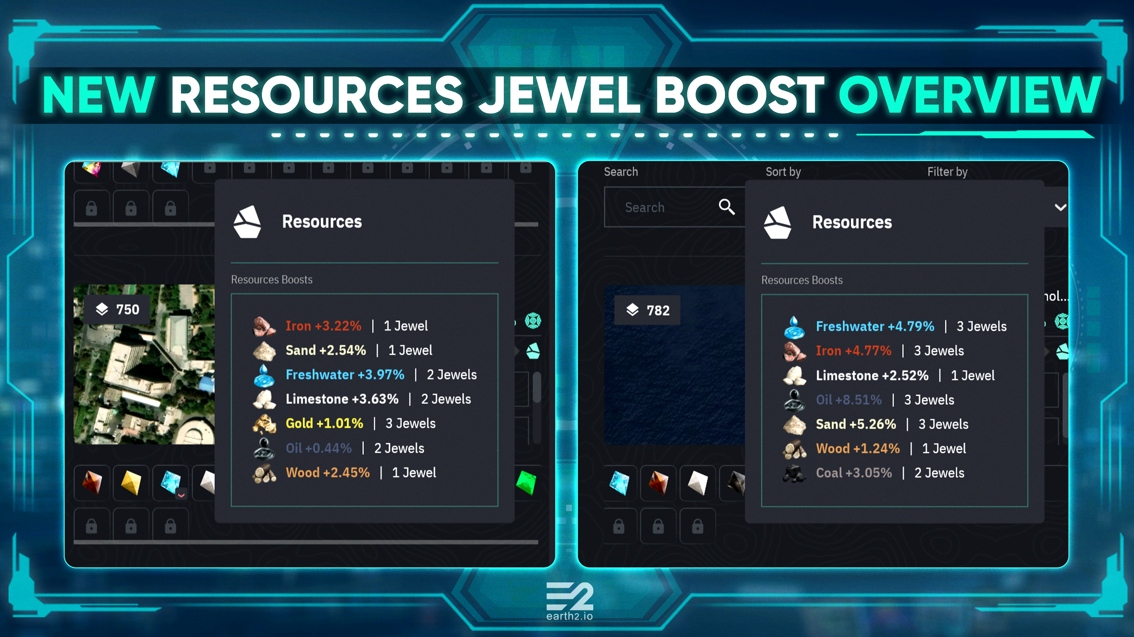 此更新提供了一个不错的总览,总结了镶嵌到地块 Mentar 上的多个 Jewel 的增益效果。要查看此总览,只需在 Jewel slotting 页面(右侧菜单 > Resources > Slotting)上的地块卡片右侧找到新图标。
